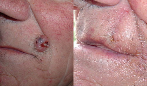 - facial plastic surgery; removal of pathological skin lesion and primary reconstruction of defect
